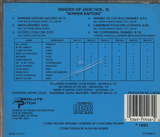 Shades Of Jade: Summer Rapture MUSIC AUDIO CD latin jazz 1990 Absolute Pitch NEW