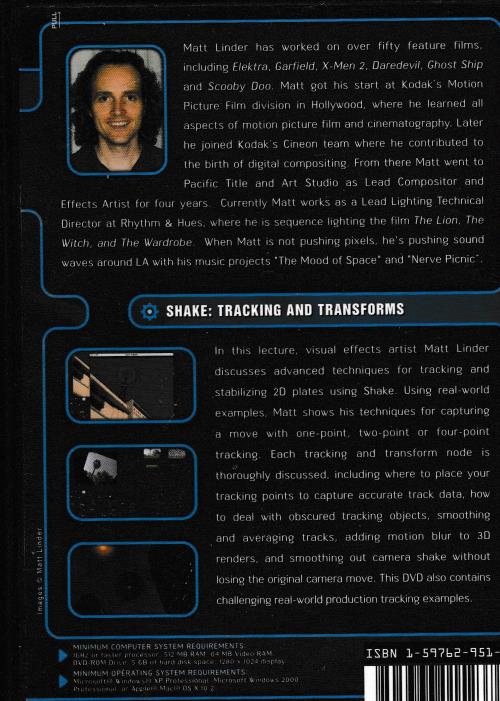 Shake: Tracking & Transforms DVD VIDEO VFX compositing techniques w/ Matt Linder