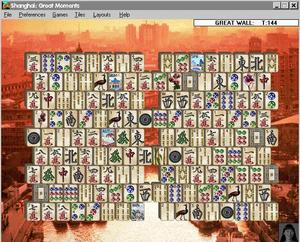 A wide array of customization options includes magnetism, contemplation, music, sound, tile animation, movie resolutions, backgrounds, host hints or strategies, cursor effects, shuffling tiles, x-ray mode, find a match and autoplay. In addition to The Great Wall mode of play (tiles fall as lower ones are removed), Shanghai Great Moments offers Beijing (slide entire rows to make matches) and Action Shanghai (speed factor) styles.