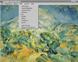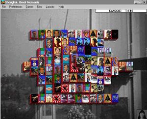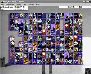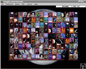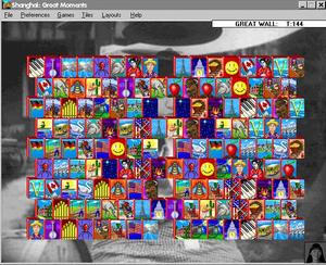 Shanghai Great Moments is a collection of tile sets and layouts containing numerous variations of the age-old game of mahjongg. More than 400 unique tiles, 150 video clips and 300 animations are packed into this tile-matching game, which is hosted by actress Rosalind Chao through a series of live action videos. Gameplay supports both solitaire and two-player tournament mode and offers full motion video film clips from movies, artwork and more as rewards for completing a game.
