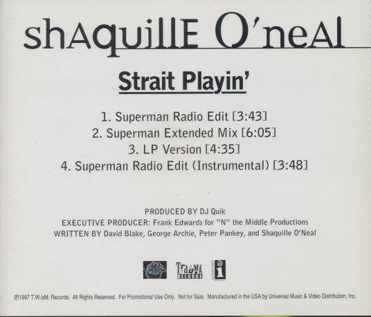Shaquille O'Neal: Strait Playin' 4-Track Promo w/ Back Artwork