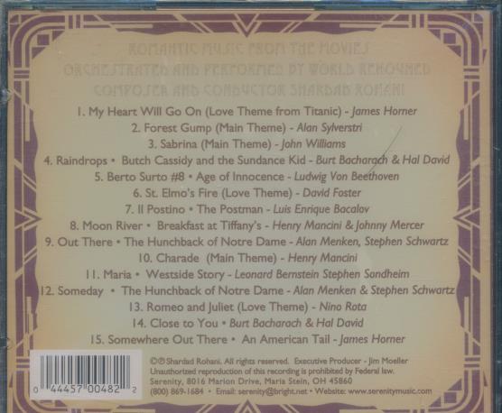 Shardad Rohani is a world renowned composer, conductor and arranger known for his lush orchestral interpretations of film themes. Cinema Passion showcases his romantic and cinematic approach to popular movie melodies, arranged for orchestra and featured piano. The album blends sweeping strings, tasteful piano solos and classic themes from beloved films to create an evocative listening experience. Rohani emphasizes melody and emotional expression, making this set accessible to fans of orchestral film music.