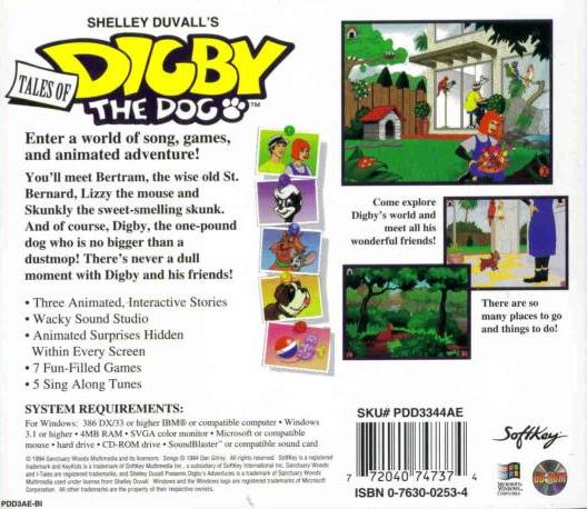 Enter a world of song, games, and animated adventure! You'll meet Bertram, the wise old St. Bernard, Lizzy the mouse and Skunkly the sweet-smelling skunk. And of course, Digby, the one-pound dog who is no bigger than a dustmop! There's never a dull moment with Digby and his friends! Three animated, interactive stories. Wacky sound studio. Animated surprises hidden within every scene.