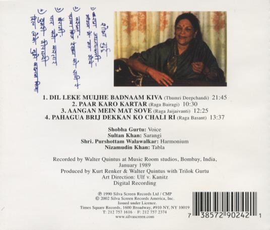Shobha Gurtu: India MUSIC AUDIO CD indian classical hindustani 2002 Silva Screen