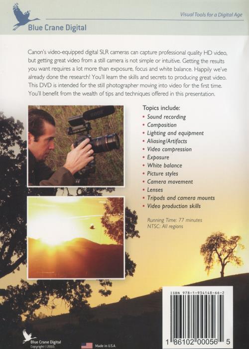 Visual Tools for a Digital Age Blue Crane Digital. Canon's video-equipped digital SLR cameras can capture professional quality HD video, but getting great video from a still camera is not simple or intuitive. Getting the results you want requires a lot more than exposure, focus, and white balance. Thankfully, we've already done the research! You'll learn the skills and secrets to producing great video. This DVD is intended for the still photographer moving into video for the first time. You'll benefit from the wealth of tips and techniques offered in this presentation.