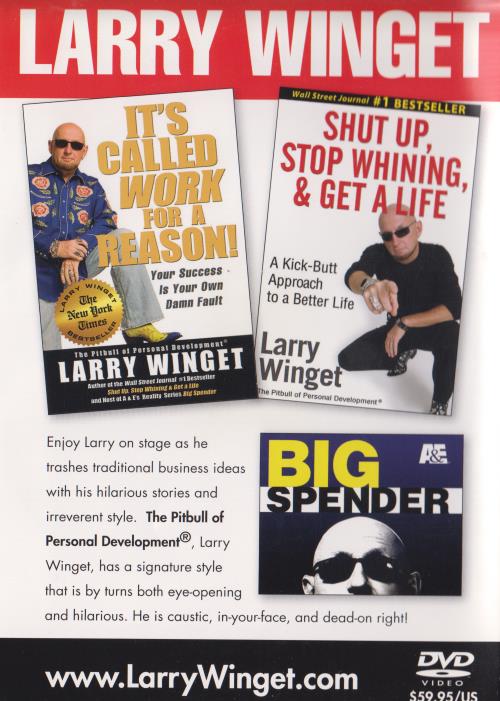 This DVD, available for $59.95 in the US, features Larry Winget's most popular keynote live recording. It is based on the Wall Street Journal #1 Bestseller authored by Larry Winget.