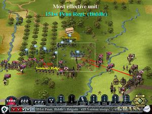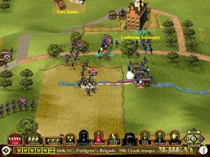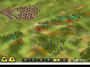 Gettysburg plays out in real time, unlike other games that model the battle with consecutive turns. Players can slow things down when the action gets out of hand, or speed things up during long marches or while waiting for reinforcements to arrive. The terrain is 3-D and line of sight is modeled, so you aren't going to see that Confederate regiment behind the hill until either your units or theirs crest the ridge. This also makes it possible to hide some units in a tree line for a devastating ambush.