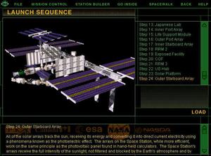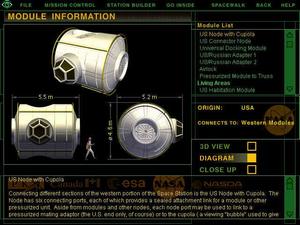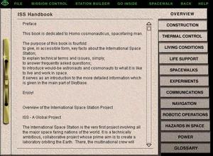 Virtual tours of the space station are provided from both an internal and external perspective. At the time of the game's release, the ISS was scheduled for completion in the year 2003. As a source of information and visual aids regarding all aspects of the ISS, including launch sites, experiments and usage, and functions of all modules, SkyBase's well-designed presentation features excellent narration, as well as full-motion video of past space events.