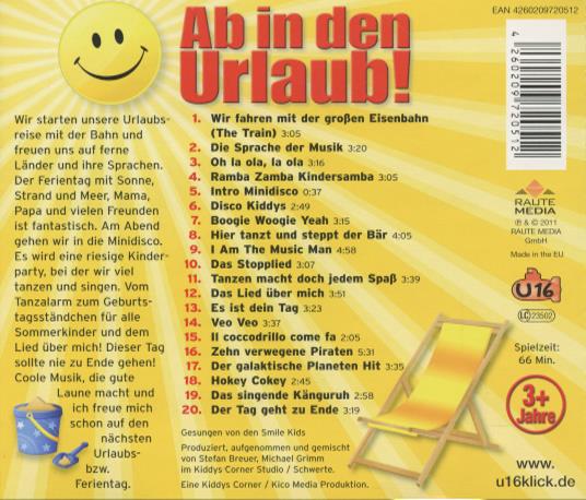Smile Kids: Ab In Den Urlaub! MUSIC AUDIO CD kids' party songs! EU 2011 German