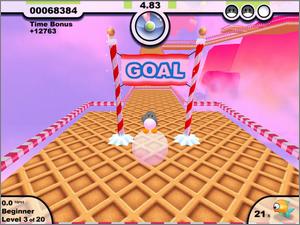 Snowball Run offers 75 levels of ramps, curves, jumps, and obstacles. Players will guide a snowball riding penguin through five fantasy worlds while racing against the clock. Extra lives are available, as are bonus items (for increasing scores). Manuveur a Penguin (rolling on a snowball) through assorted trap-filled mazes. Down hills at incredible speeds, falling off the edges of the puzzle boArds, while jumping so high you literally fly away ...grabbing fish to score points and get free lives.