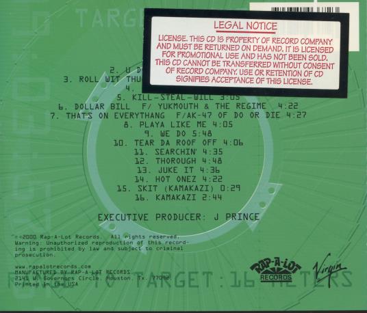 Snypaz: Livin’ In The Scope PROMO MUSIC AUDIO CD gangsta! 2001 Rap-A-Lot Records
