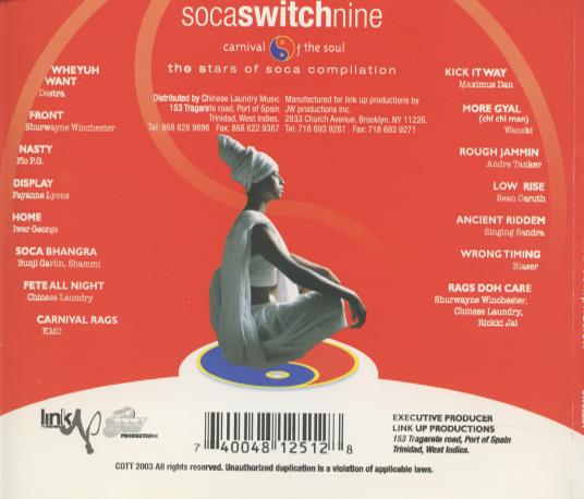 Soca Switch Nine is a vibrant compilation album showcasing the stars of the soca genre. Soca is a popular Caribbean music style known for its energetic rhythms and carnival spirit. This album features a mix of classic and contemporary soca tracks that capture the essence of carnival and the soulful energy of the islands. The compilation celebrates the festive culture and diverse musical talents from Trinidad and the wider Caribbean.