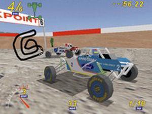 It's time for the Short Course Off-Road Drivers Association's (SODA) monster truck rally. Get behind the wheel of one of three trucks - a 4-wheel drive, a 2-wheel drive, or a buggy - and feel the course and the collisions through the game's force feedback controllers. Choose from one of three racing environments or design your own track with the Track Designer. Pick everything from the layout to the position of the puddles and go for it. There's also a career play option which allows you to track your progress all the way to the top of the Championship Series standings. The more races you win, the better your truck gets.