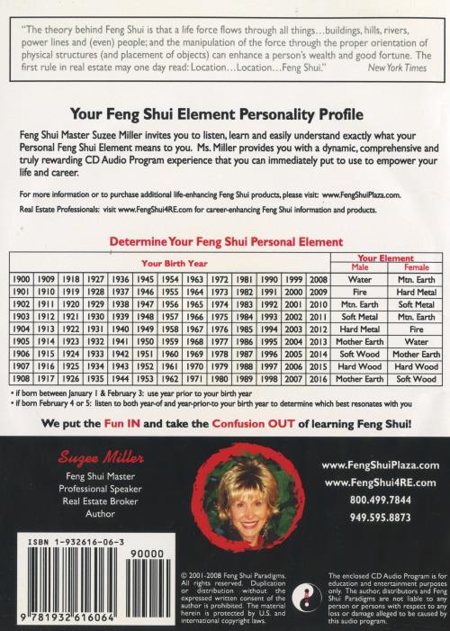In "Your Feng Shui Element Personality Profile," Feng Shui Master Suzee provides listeners with a comprehensive understanding of their personal Feng Shui element and its significance. Through engaging and accessible audio content, Miller empowers individuals to apply Feng Shui principles to enhance various aspects of their lives, including career and relationships.