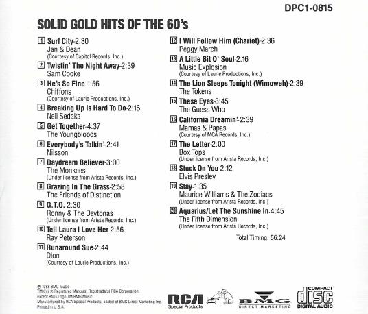 Solid Gold Hits Of The 60's MUSIC AUDIO CD rock & roll classics oldies pop soul