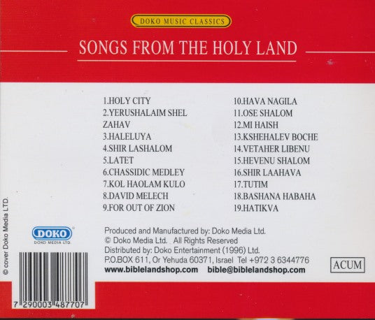 Songs From The Holy Land MUSIC AUDIO CD Jewish Israeli hymns worship! 1996 Doko