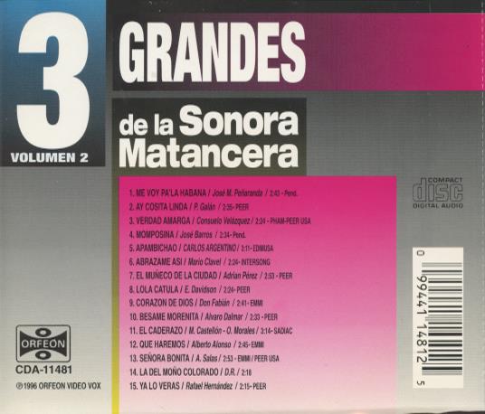 Sonora Matancera 3 Grandes Volumen 2 MUSIC AUDIO CD latin cuban band 1996 Orfeon