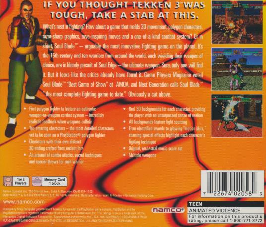 Soul Blade PLAYSTATION 1 PS1 PS2 classic 90s fighting combat weapons game 1996