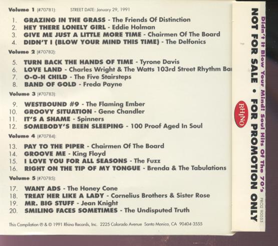 Soul Hits Of The 70's: Didn't It Blow Your Mind! Vol 1-5 PROMO MUSIC AUDIO CD