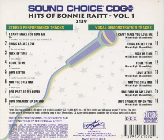 SOUND CHOICE CDG PLUS KARAOKE: HITS OF BONNIE RAITT VOL. 1