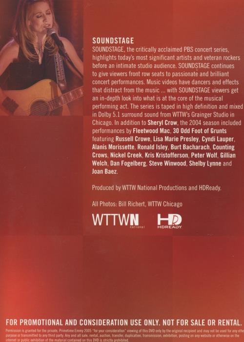 Sound Stage FYC DVD VIDEO MUSIC concert series performances Sheryl Crow PBS 2005