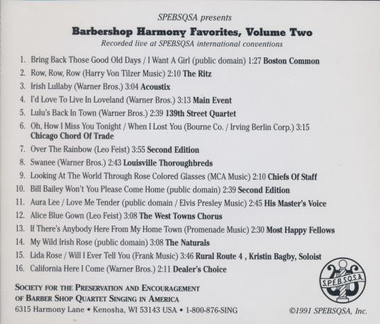 Recorded live at SPEBSQSA international conventions. ©1991 SPEBSQSA, Inc.