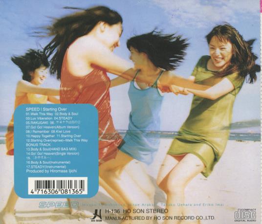 SPEED is a Japanese female pop group formed in Okinawa. They perform energetic, dance-oriented pop with tight vocal harmonies and polished production. Starting Over showcases their upbeat rhythms, catchy hooks, and youthful image. This release highlights a mix of pop and R&B-influenced tracks geared toward mainstream radio and fans of 90s idol pop.