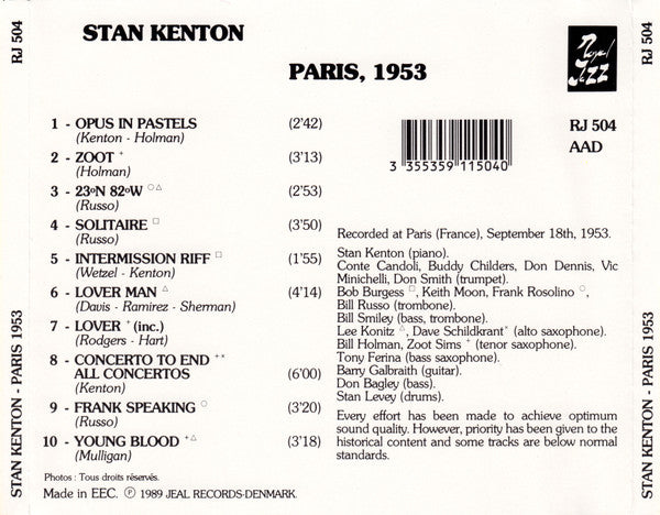 Stan Kenton: Paris, 1953 MUSIC AUDIO CD big band jazz 1989 Denmark Royal Jazz