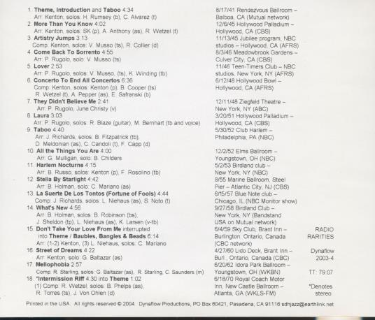 Stan Kenton: Radio Rarities MUSIC AUDIO CD broadcast material 40s-70s jazz! 2004