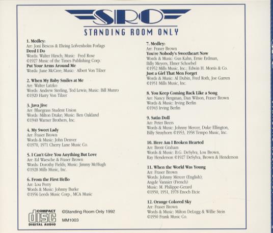 Standing Room Only: SRO MUSIC AUDIO CD classic big band jazz swing group 1992