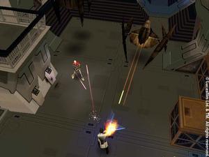 Impeding your progress stand Battle Droids, Destroyer Droids, a Coruscant Mercenary, Tusken Raiders, vicious Naboo swamp creatures and other antagonists. And what would a game based on The Phantom Menace be without a climactic confrontation with Darth Maul? In order to combat this opposition, your vast array of weapons includes four types of blasters, Gungan energy balls, grenades, thermal detonators and droid stunners. In addition, the game's two Jedi can use their powerful lightsabers to slice through anything or the Force to push back and temporarily disable an enemy.