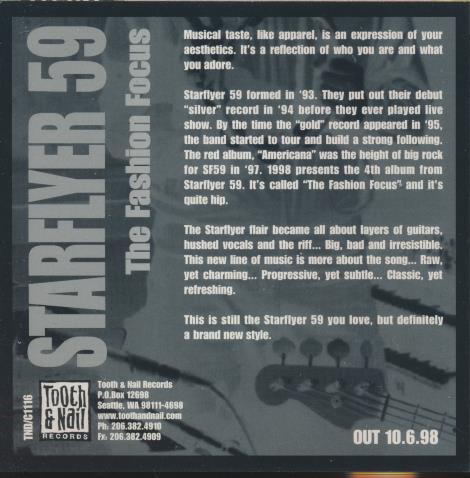 Starflyer 59: The Fashion Focus Promo w/ Front Artwork