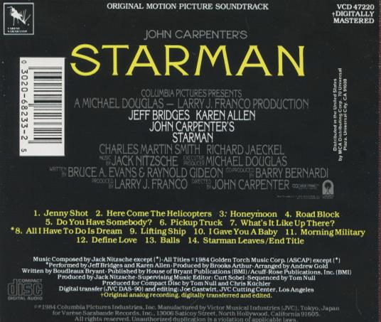 Starman: Original Motion Picture Soundtrack MUSIC AUDIO CD 80s film score 1984