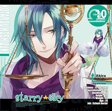 The constellation boyfriend series is a CD in which boys with 12 constellation personality traits become your "boyfriends", go on dates together, and gently whisper to you. As an added bonus, the boys of each zodiac sign will hold useful lectures in their own fields of expertise, and come with a truck that will pretend to be a fortune-teller at the fortune-telling hall "Starry Sky". The 10th boyfriend is a Libra boy "Kotaro Hoshizuki" born between September 24th and October 23rd, and the cast is Akira Ishida. (*This is a story after the main story of his PC game "Starry ☆ Sky ~in Autumn~" attached to the planetarium CD "Starry ☆ Sky" released on September 25th, but if you played the game, Even if you don't have it, you can enjoy it as a single item.)