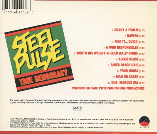 Steel Pulse: True Democracy MUSIC AUDIO CD roots reggae political 1982 Elektra