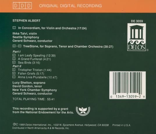 Stephen Albert: Violin Concerto, Treestone MUSIC AUDIO CD classical 1989 Delos