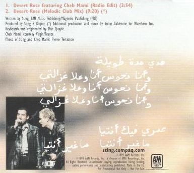 Sting: Desert Rose EU PROMO w/ Artwork MUSIC AUDIO CD featuring Cheb Mami Club