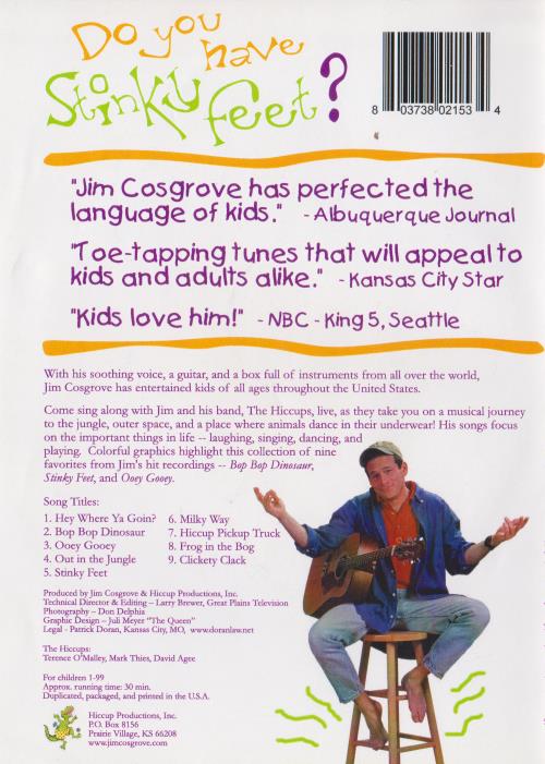 Stinky Feet Live! "Jim Cosgrove has perfected the language of kids." - Albuquerque Journal -roe-tapping tunes that will appeal to kids and adults alike." - Kansas .ansas City Star "Kids love him!" - NBC - King 5, Seattle With his soothing voice, a guitar, and a box full of instruments from all over the world, Jim Cosgrove has entertained kids of all ages throughout the United States.
