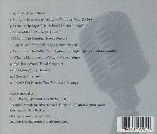 Stone Soul perform faithful, energetic interpretations of classic soul and R&B material. This release finds the group tackling well-known songs from artists such as Edwin Starr, Stevie Wonder, Al Green and James Brown. Recorded, mixed and mastered at The Institute of Musical Misbehavior, the album emphasizes tight grooves and soulful vocals. The band pays clear homage to the Motown and classic soul era while delivering their own spirited takes on the material.