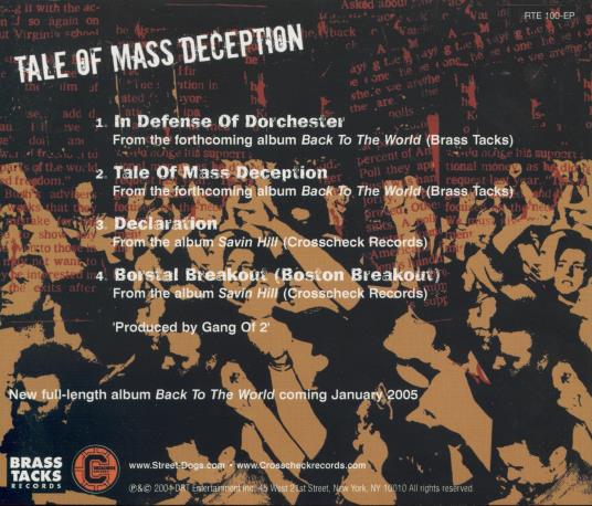 Street Dogs: Tale Of Mass Deception EP MUSIC CD punk rock band! 2004 Brass Tacks