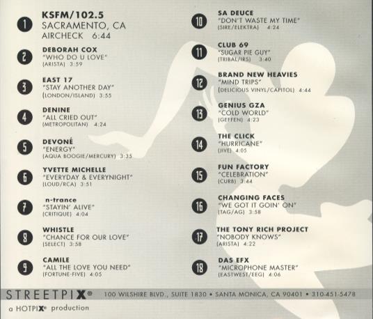 Produced by Hotpix, this compilation was featured on KSFM 102.5 from Sacramento, CA, highlighting the best in urban music of the time. The album features 18 tracks with a total run time reflecting the energetic and soulful vibe of the mid-90s hip hop and R&B scenes.