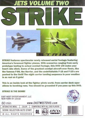 STRIKE features spectacular newly released aerial footage featuring America's foremost fighter planes. With scenarios ranging from early protype testing to actual combat footage, this DVD will make your heart rate climb. Some of the greatest combat aircraft ever flown, like the famous F-86, the Harrier, and the undefeatable F-18 and F-15's are pushed to the limit! The night carrier landing sequence in poor weather is as real as it gets!
