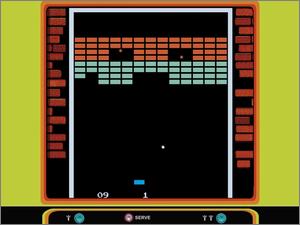 Super Breakout PC CD bouncing a ball against a wall knock off bricks arcade game