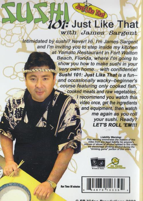 Sushi 101: Just Like That With James Sargent DVD VIDEO COOKING step-by-step 2008