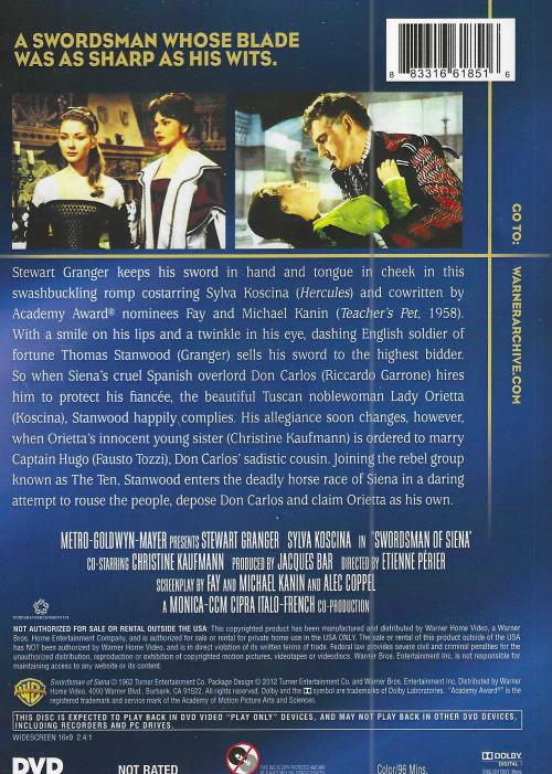 Swordsman Of Siena DVD VIDEO MOVIE bodyguard to beauty temptation treachery 1962