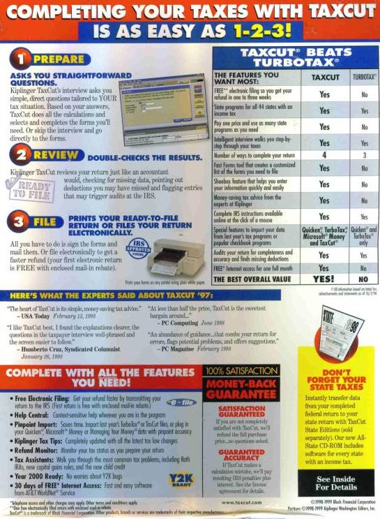 TaxCut 1998 Federal PC CD amend file previous income tax returns tool! Kiplinger