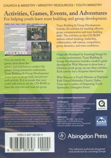 Designed specifically for youth ministry, the games and activities on this CD challenge youth group members to communicate and work together for shared success--while having a lot of fun. The CDs' video, images, easy explanations, and printable instructions make it easy to learn and lead these games and activities. The games and activities can be used in a youth program, retreat, lock-in, or just for a fun game night. The CD makes facilitating activities and games so easy that students can review an activity on the CD and then lead it with their peers. Well-known youth leader Walt Marcum has developed a these activities with a Christian focus. Team Building & Group Development. Provides twenty activities that address leadership, critical thinking, collaboration, individual self-esteem, character development, group dynamics, and team confidence.