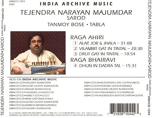 TEJENDRA NARAYAN MAJUMDAR: SAROD: RAGA AHIRI