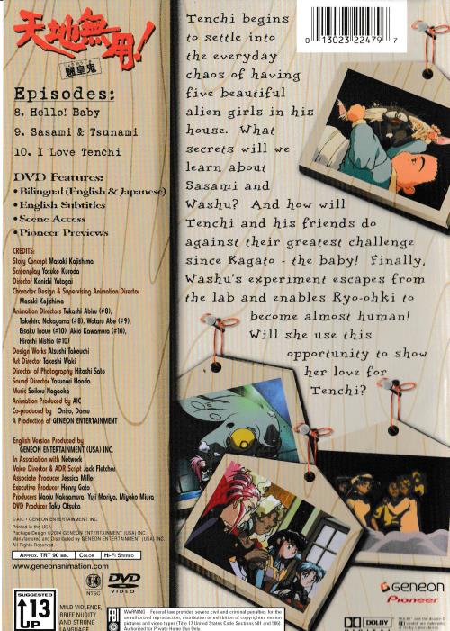 Episodes: B. Hello! Baby 9. Sasami & Tsunami :10. I Love Tenchi