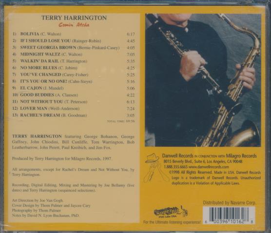 Terry Harrington: Comin' Atcha MUSIC AUDIO CD jazz saxophone '98 Danwell SEALED
